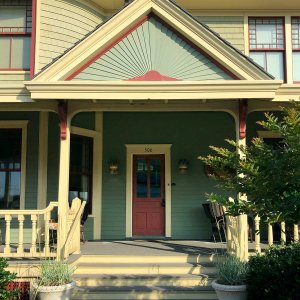 Enter Williams Cottage Inn and you’ll be welcomed back to Beach Haven in the 1880s. The foyer retains the original wooden staircase and decorative terra cotta fireplace. Victorian hand-screened wallpapers wrap the octagonal space in a wealth of beautiful patterns lit by the warm glow of an alabaster chandelier.