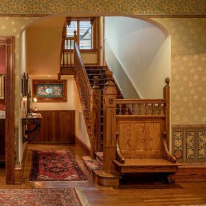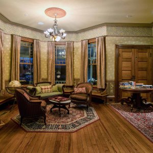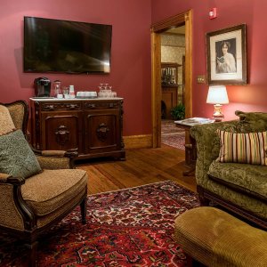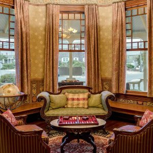 Oriental rugs and stained glass lead you to the reception desk where even the bell is authentic to the period. The relaxed sitting area is the perfect spot for reading a book or playing backgammon. For private events, the original hardwood floors provide the perfect dance floor!